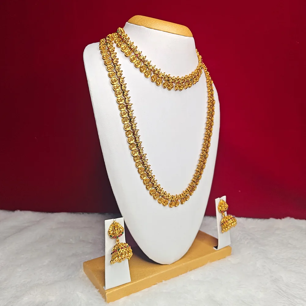 PACKAGE CONTENT – Matt Finish Kaasu Malai Bridel Set With Jhumka